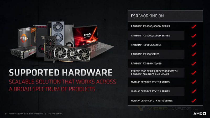 AMD lanzó hoy de manera oficial la tecnología FidelityFX Super Resolution, su nueva técnica de reescalado para aumentar el rendimiento en juegos, y te traemos toda la información necesaria sobre en que juegos podrás utilizarla, cuanto aumentará su rendimiento al utilizarla, y cual es la lista de GPUs compatibles, que como ya anticipamos, incluye no solo GPUs de AMD, sino también de Nvidia.