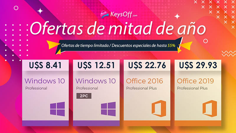 Ya pasamos la primera mitad de 2021, y para celebrarlo, Keysoff lanzó nuevas ofertas en software, incluyendo descuentos de hasta 55% en las licencias más buscadas de Microsoft: Windows y Office. Comprar una licencia de Windows 10 te permitirá sacar el mejor rendimiento y obtener la máxima seguridad en tu sistema, y si tu PC es compatible, además te permitirá actualizar de manera gratuita a Windows 11, la próxima edición del sistema operativo más popular para PCs. Los descuentos también incluyen ofertas en Office 2019, para aumentar tu productividad y mejorar tu eficiencia en el estudio o en el trabajo. No te podes perder estas ofert....